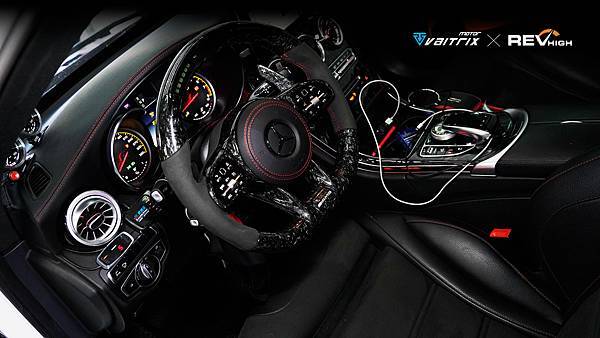 Mercedes-AMG 旗下的43車系全數搭載3.0 V6雙渦輪引擎,優雅內斂外型卻擁有恰如其分的武裝性能。對於平日代步卻又對動力追求的玩家想必43家族是最佳選擇。這台全身用鍛造碳纖維套件打造的C43,迷人又帥氣的外表搭配多款VAITRIX錶款,油門加速器及水噴套件。