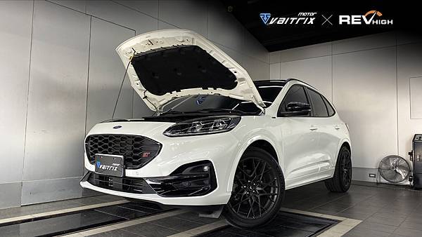 正2021年式Kuga分別在安全、豪華、娛樂配備皆全面提升,Kuga車主最青睞的頂規車型純正性能跑旅ST-Line則以「更運動、更跑旅」推升豪華跑格定位。車主帶來愛車EcoBoost 250 AWD ST-Line X車型延續純正性能跑旅基因激發改裝潛力,硬件方面客人升級排氣中尾段,交給Dr. Simon客製化動力升級。