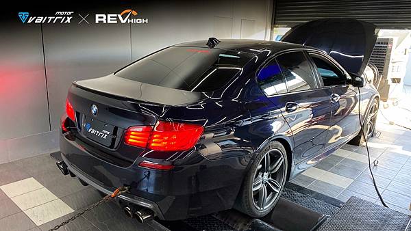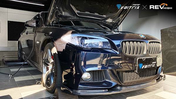 F10 535i 搭載N55B30引擎由早期的N54B30引擎修改而來,將雙渦輪改成單渦輪系統。單渦輪系統能夠有效減少引擎排氣干涉問題,讓引擎換氣效率更好,而且渦輪葉片轉動起來的速度也能較快速提升,總體來說引擎反應也較為敏捷。這台的升級潛力也是滿不錯的,Vaitirx二階調校出來+47匹馬力/109Nm扭力,Dr. Simon創造平穩的動力輸出,困難的部分交給Vaitrix