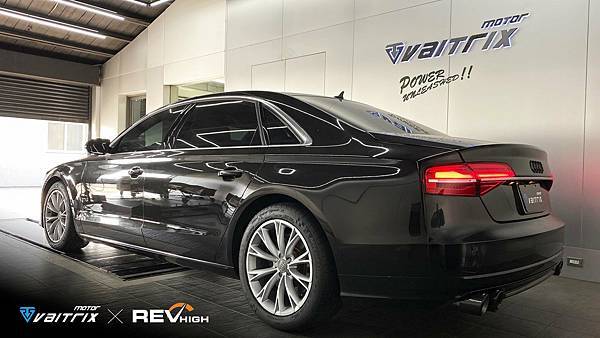 AUDI A8搭載4.0升V8 TFSI雙渦輪增壓汽油引擎,結合缸內直噴與10.1:1高壓縮比設計,具備420hp最大馬力和61.2kgm最大扭力的優異性能數據。精益求精,車主將外觀套件升級成S8,排氣管交給東岸升級,內寫程式交給Dr. Simon。軟硬體的完美搭配讓A8 內內外外都能夠升級成S8,二階動力輸出直逼S8 PLUS版本。