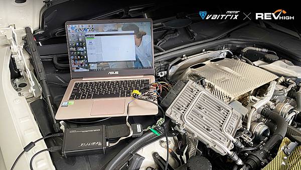 S63搭載M177的V8雙渦輪增壓引擎,可以發揮出最大馬力輸612hp/5500~6000rpm。車主已經有內寫他牌二階,同樣都是二階,動力升級交給Dr. Simon 讓愛車可以在安全值內,配合正確的硬體升級,動力有更大的升級的空間,馬力扭力再提升。不過S63原車搭載有CPC模組電腦,會限制引擎扭矩及最高限速,如果沒有升級CPC模組,就需要用數據去查看是哪個版本,了解CPC版本限制,當然引擎電腦與變速箱電腦也需要一併處理,客製化編程將動力調配合乎於CPC限制,才能將性能發揮得當。