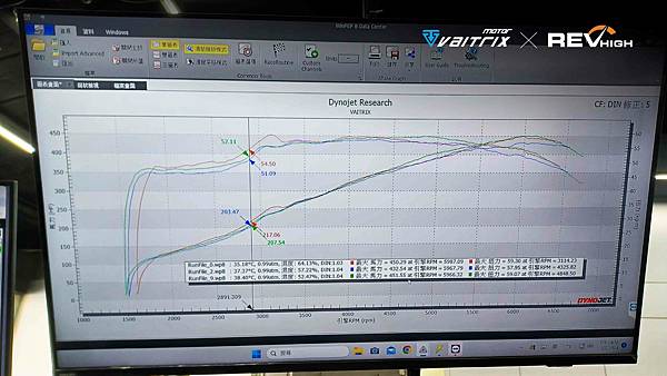 客人先前搭配他牌二階內寫,馬力數據高(輪上451.55 Hp)但卻也讓油壓數值太高!Dr. Simon將數據做調整下修(輪上432.54Hp),耐用度大大升級!安全無虞!動力升級就是選擇VAITRIX可以做到每台車專屬的編程!